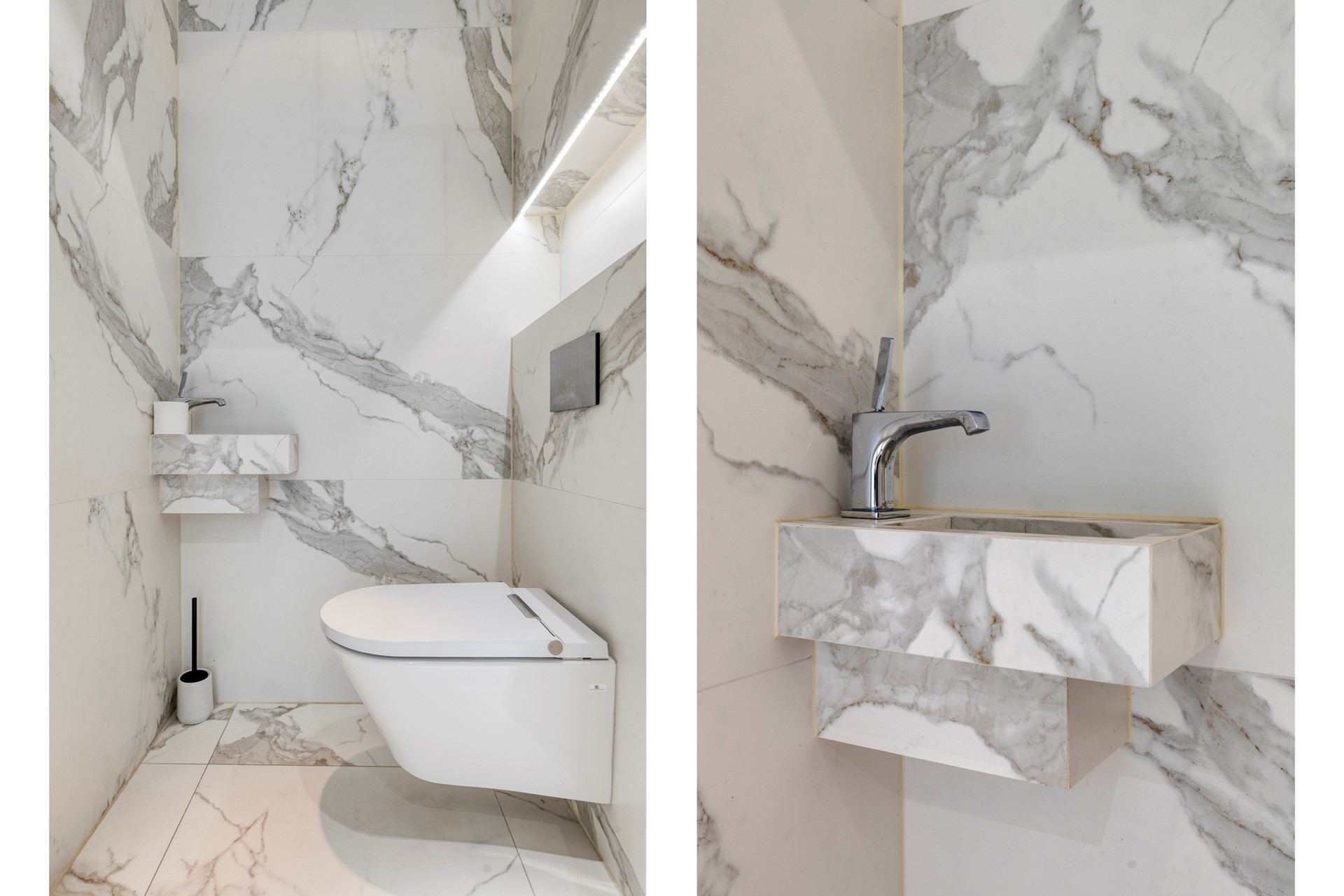 In de gang het toilet in dezelfde stijl uitgevoerd als de badkamer.
